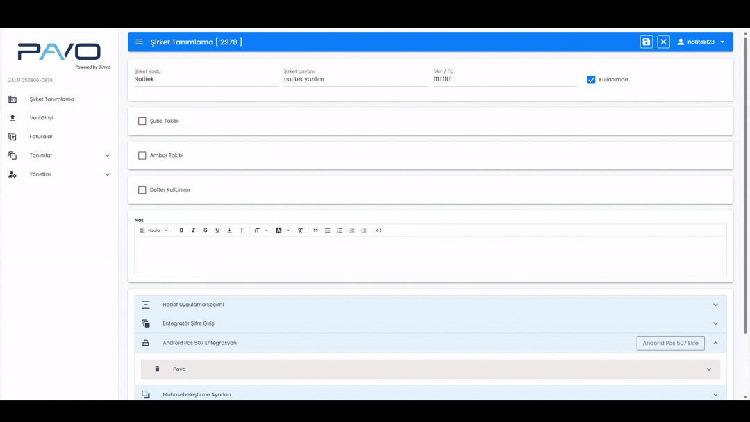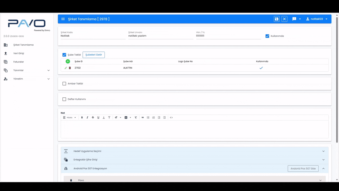 Firma API’nizi ilettikten sonra, Android POS 507 Entegrasyon kısmına gidin. Kopyaladığınız (Ctrl + C) API’yi, bu alana yapıştırarak (Ctrl + V) işlemi tamamlayın.