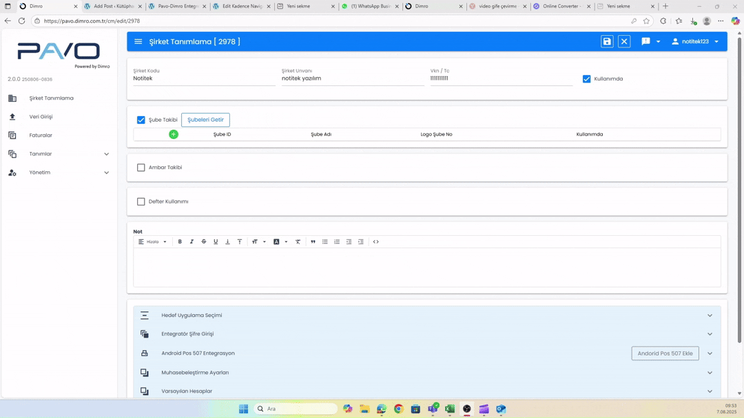 Eğer POS cihazından kesilen e-arşiv satış faturası bağlantısını ve Dimro hesap bilgisini biz size ilettiysek, bağlantı işlemini gerçekleştirmiş olabiliyoruz. Ancak, bağlantının gerçekleşip gerçekleşmediğini nasıl kontrol edebilirsiniz? Bunu görmek için, Şube Takibini açın ve ardından “Şubelerimi Getir“ butonuna basmanız yeterli olacaktır.
