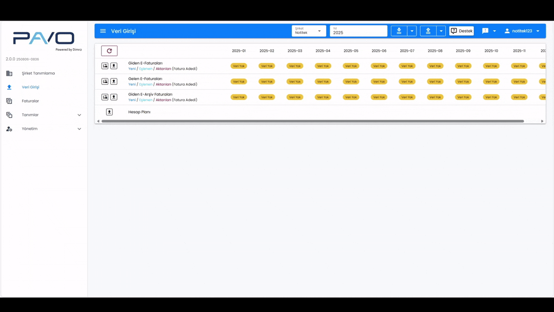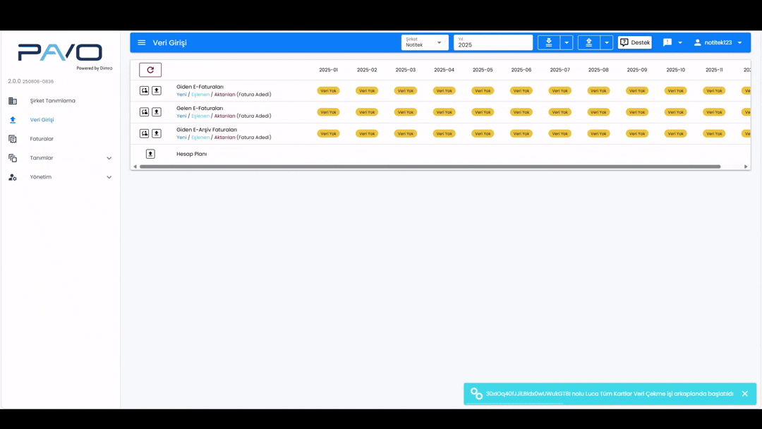 Hesap planı çekimi için şirket seçimini yapın. Seçimi yaptıktan sonra, Veri Girişi sayfasına giriş yapın ve sağ üst köşedeki İşlemi Gerçekleştir butonuna tıklayın.
