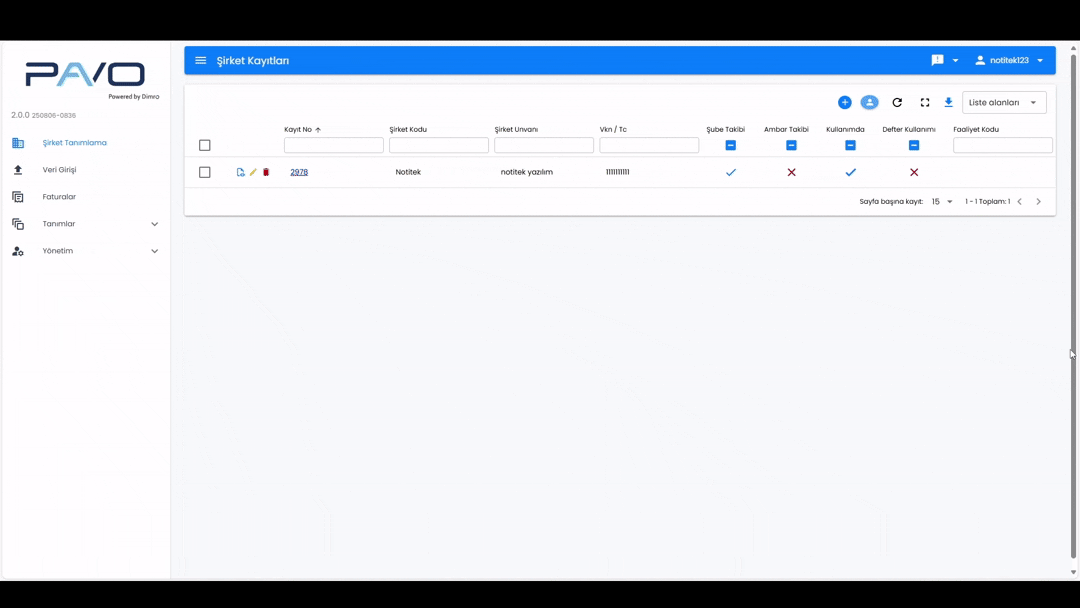 2-Şirket Tanımlama Sayfası