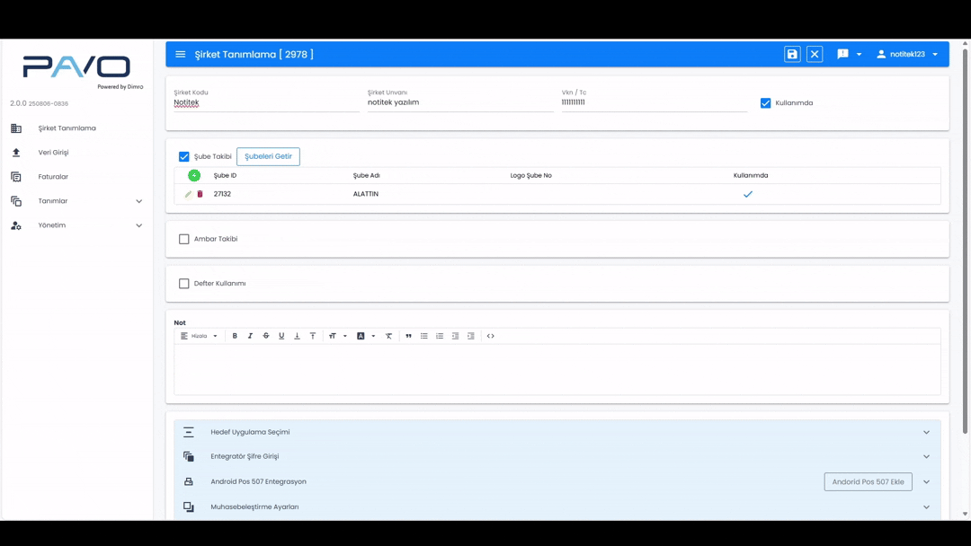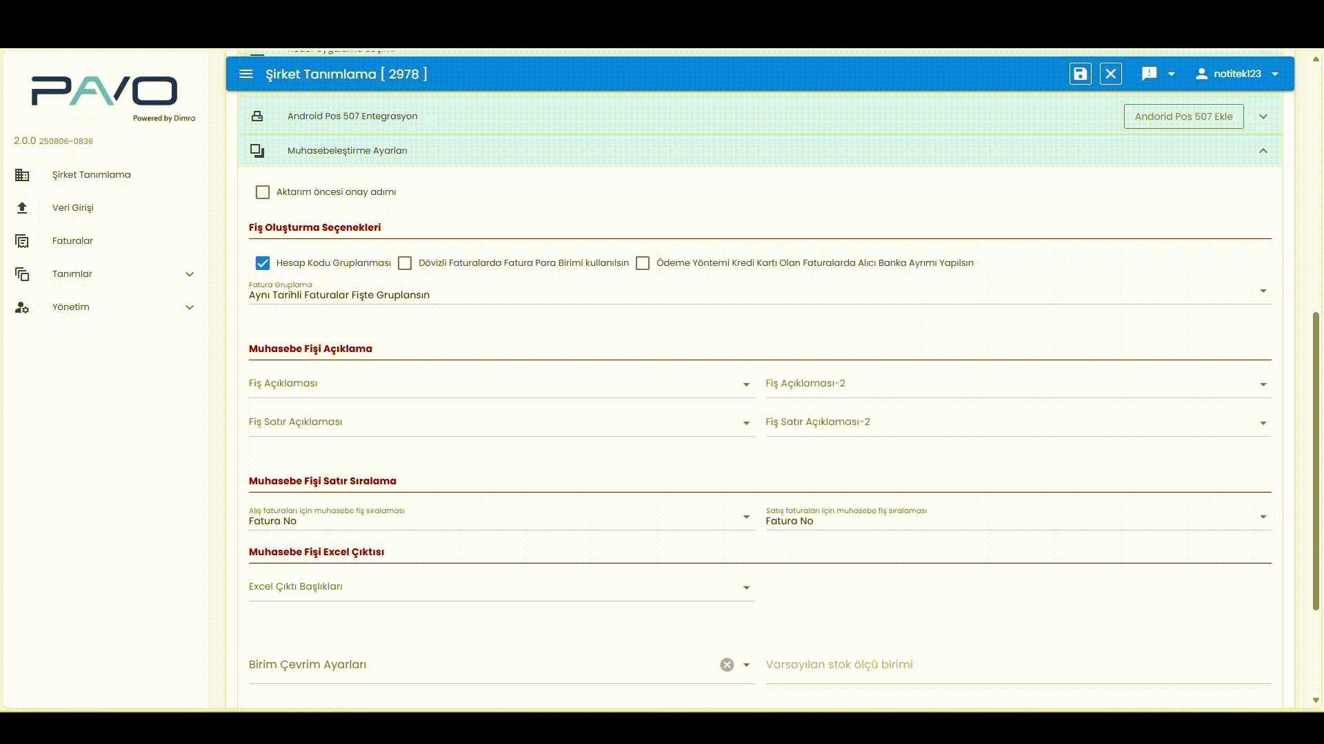 Pavo-Dimro Şİrket Muhasebeleştİrme Ayarları