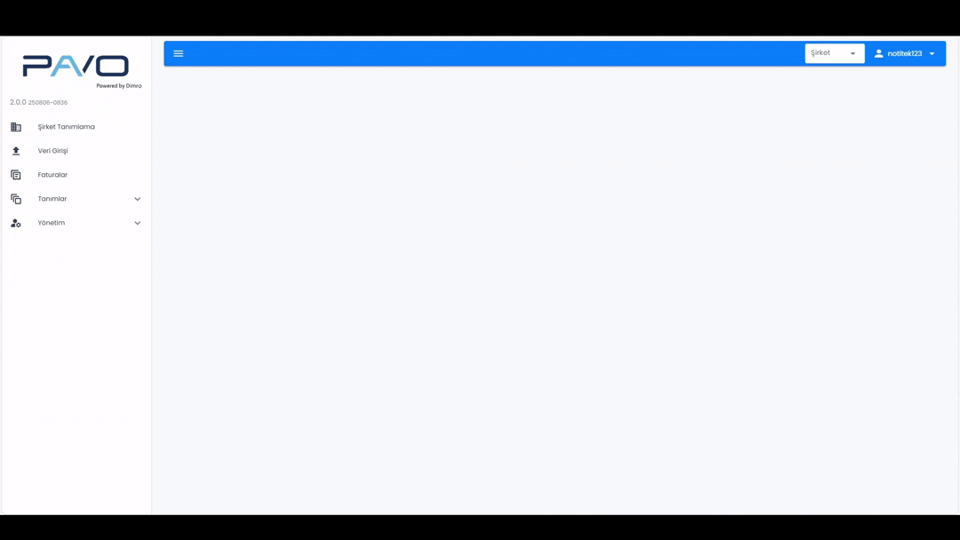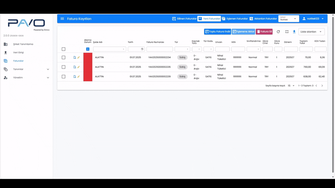 Şirket Seçimini gerçekleştirdikten sonra Faturalar sayfasına geçiş yapıyoruz.