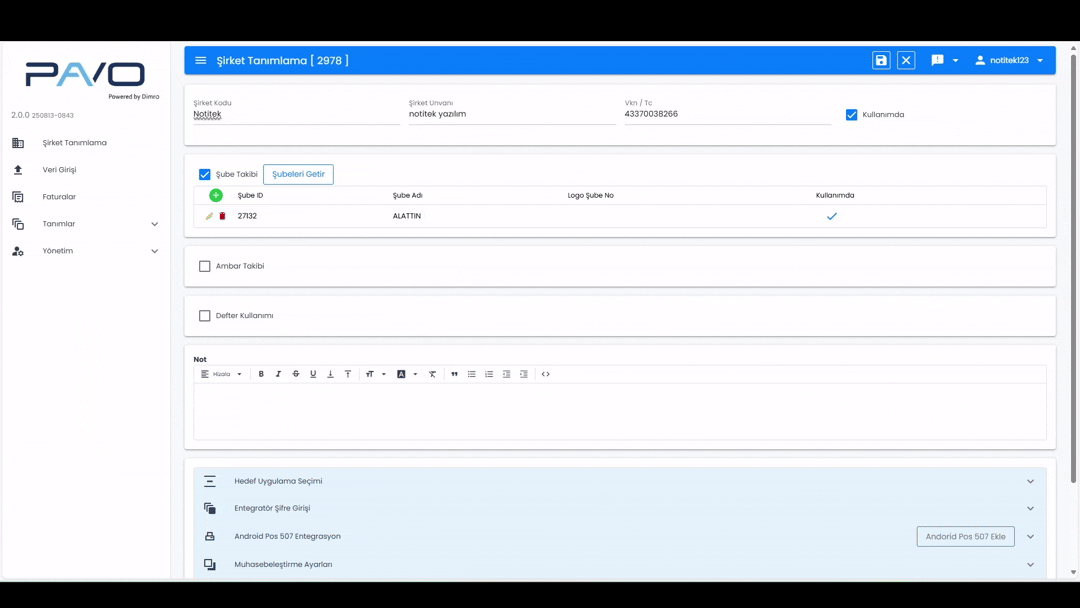 1-Şİrket tanımlama Sayfası