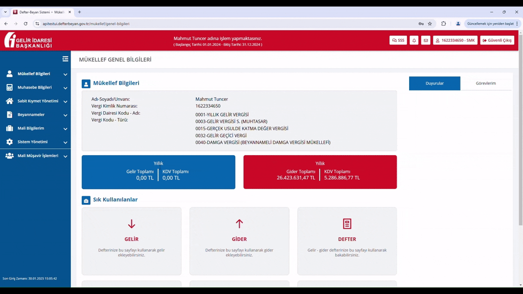 İlk adım olarak hesabımıza giriş yaptıktan sonra sol taraftaki yan menüden, Şirket tanımlama butonuna basıyoruz.